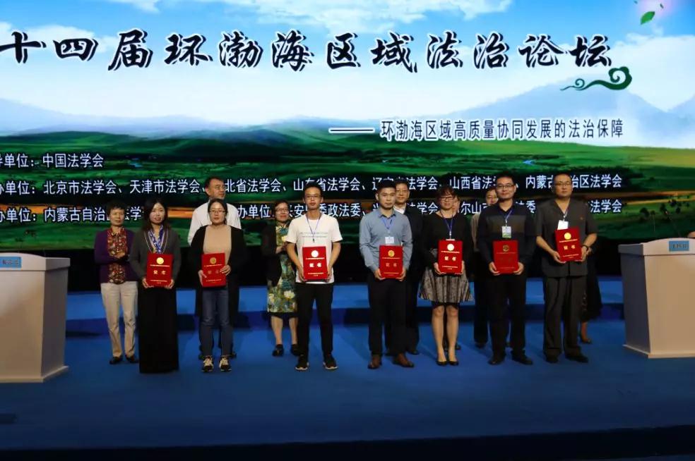 此次论坛共征集到法学研究论文1126篇,评选出获奖论文79篇。中国法学会研究部副主任彭伶宣读了《关于表彰第十四届“环渤海区域法治论坛”获奖论文作者和优秀组织单位的决定》,与会领导嘉宾为获得优秀组织奖单位和获奖论文作者代表颁奖。