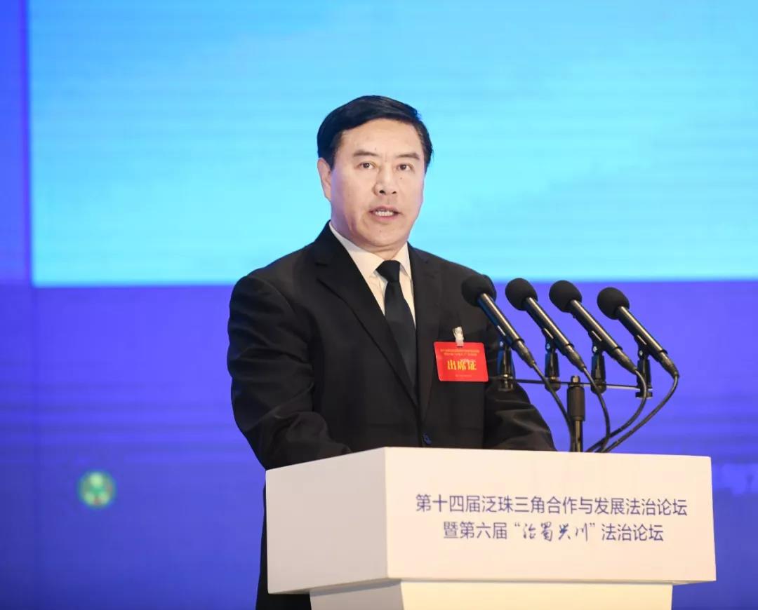 10月22日,中国法学会第十四届泛珠三角合作与发展法治论坛暨四川省法学会第六届“治蜀兴川”法治论坛在广安市成功举办。中国法学会副会长甘藏春,四川省委常委、政法委书记、省法学会会长邓勇,省社科联主席、省法学会副会长杨泉明,广安市委书记李建勤,市委副书记、市长曾卿,中国法学会会员部副主任崔秀娟,四川省委政法委副书记、省法学会党组书记、常务副会长沈涧出席论坛。甘藏春、邓勇、曾卿在开幕式上致辞。沈涧主持论坛开幕式并作闭幕总结。来自泛珠三角区域十省(区、市)及特邀黑龙江省、甘肃省法学会,各市(州)法学会,省直有关部门和在川企业、高校、新闻媒体的嘉宾共400余人参加论坛。