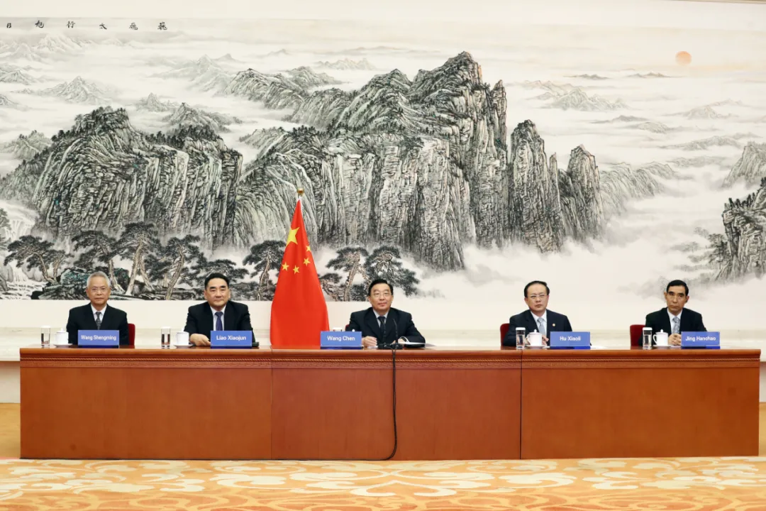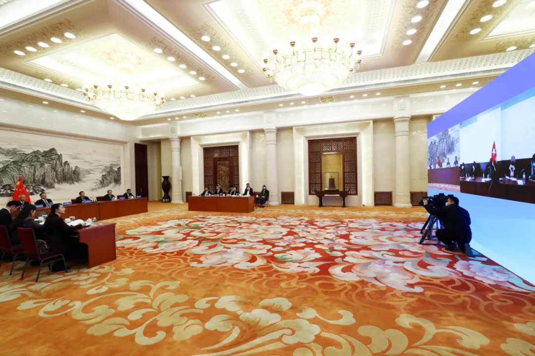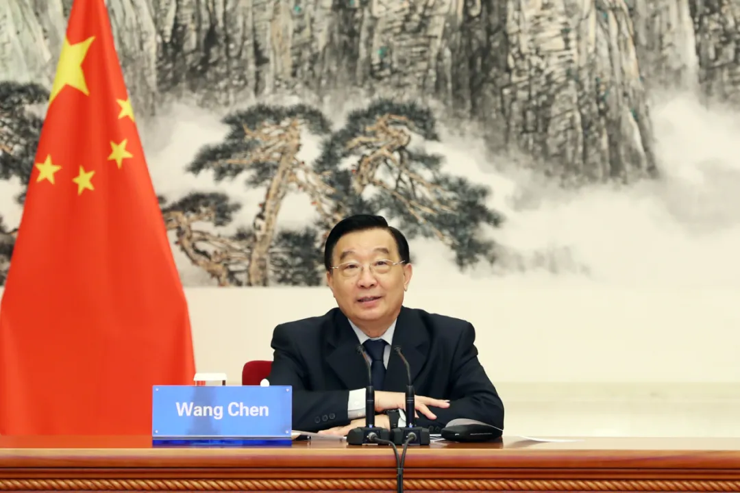 4月16日,中共中央政治局委员、全国人大常委会副委员长、中国法学会会长王晨在京与多哥国民议会副议长阿朱若维举行视频会晤