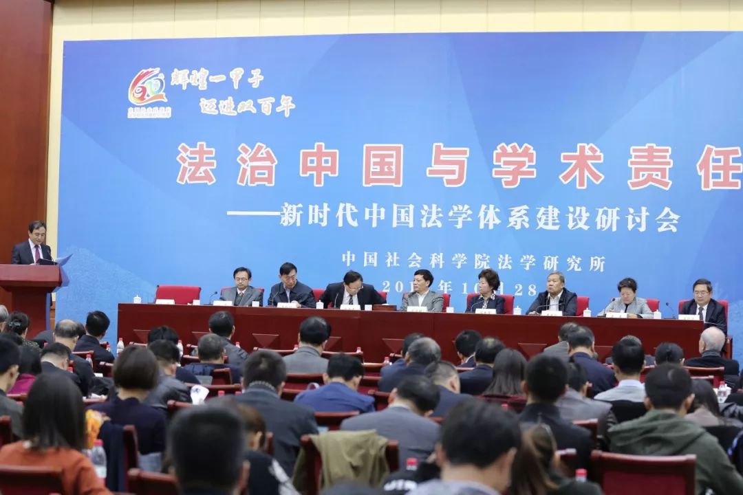 10月28日,纪念中国社会科学院法学研究所建所60周年“法治中国与学术责任——新时代中国法学体系建设研讨会”在中国社会科学院学术报告厅举行。研讨会由中国社会科学院法学研究所主办,中国社会科学院党组书记、院长、学部主席团主席谢伏瞻,全国人大常委会机关党组副书记、副秘书长信春鹰,中国社会科学院副院长、党组成员李培林,中国法学会副会长、学术委员会主任张文显,最高人民检察院原副检察长姜建初,国家粮食与物资储备局副局长梁彦,全国人大常委会常委冯军等出席会议。中国社会科学院学部委员、法学研究所所长陈甦主持会议开幕式。