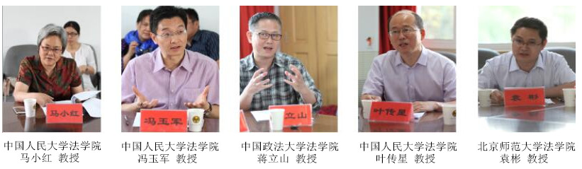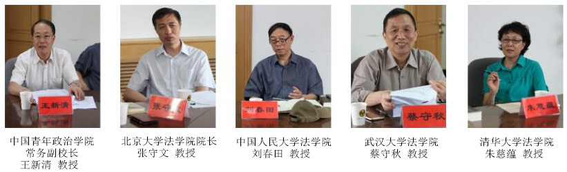 中国青年政治学院(中央团校)常务副校长、党委副书记王新清教授,中国经济法学研究会副会长、北京大学法学院院长张守文教授,中国知识产权法研究会会长、中国人民大学法学院刘春田教授,中国环境资源法学研究会会长、武汉大学法学院蔡守秋教授,中国商法学研究会常务副会长、清华大学法学院朱慈蕴教授,中国法律思想史研究会副会长、中国人民大学法学院马小红教授,中国立法学研究会常务副秘书长、中国人民大学法学院冯玉军教授,中国政法大学法学院蒋立山教授,中国人民大学法学院叶传星教授,中国刑法学研究会副秘书长、北京师范大学法学院袁彬教授,中国社会科学院法学所刘明副研究员,中国政法大学杨飞副教授,中国政法大学刑事司法学院讲师倪润,西南政法大学法学院周尚君副教授,西南政法大学法学院胡兴建副教授等参加会议。
