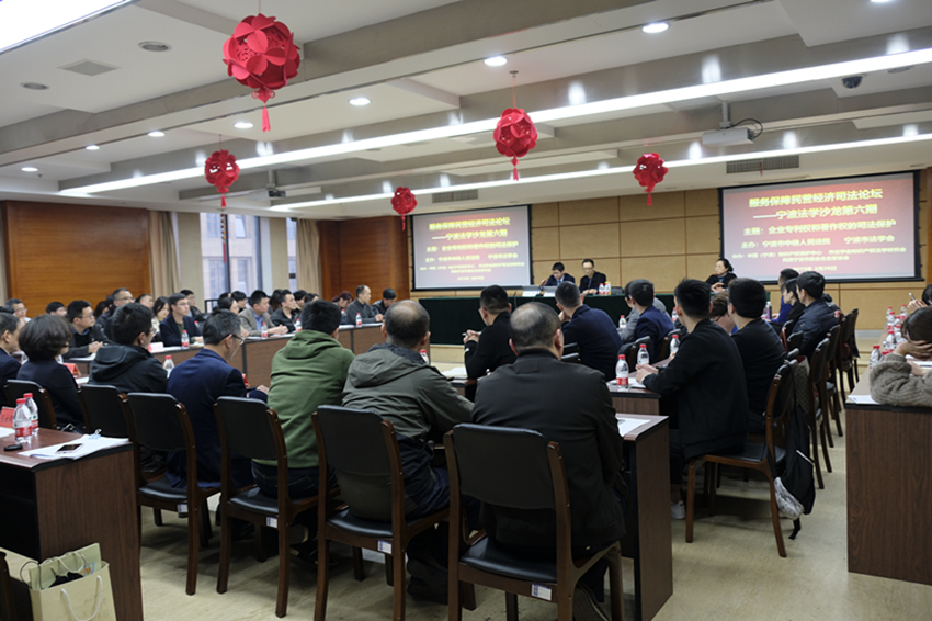 为落实“三服务”要求,3月28日,宁波市法学会联合市中级人民法院举行第六期宁波法学沙龙,专题研讨企业著作权与专利权的司法保护。宁波市法学会专职副会长陶琳、民建宁波市委会巡视员王伯宁出席,市县两级政法、市场监管等部门的实务工作者,市法学会知识产权法学研究会的律师会员,相关代理机构和企业代表等80余人参加。市中级人民法院研究室主任陆玉珍主持沙龙。沙龙由中国(宁波)知识产权保护中心、市法学会知识产权法学研究会和民建宁波市委会企业家协会协办。