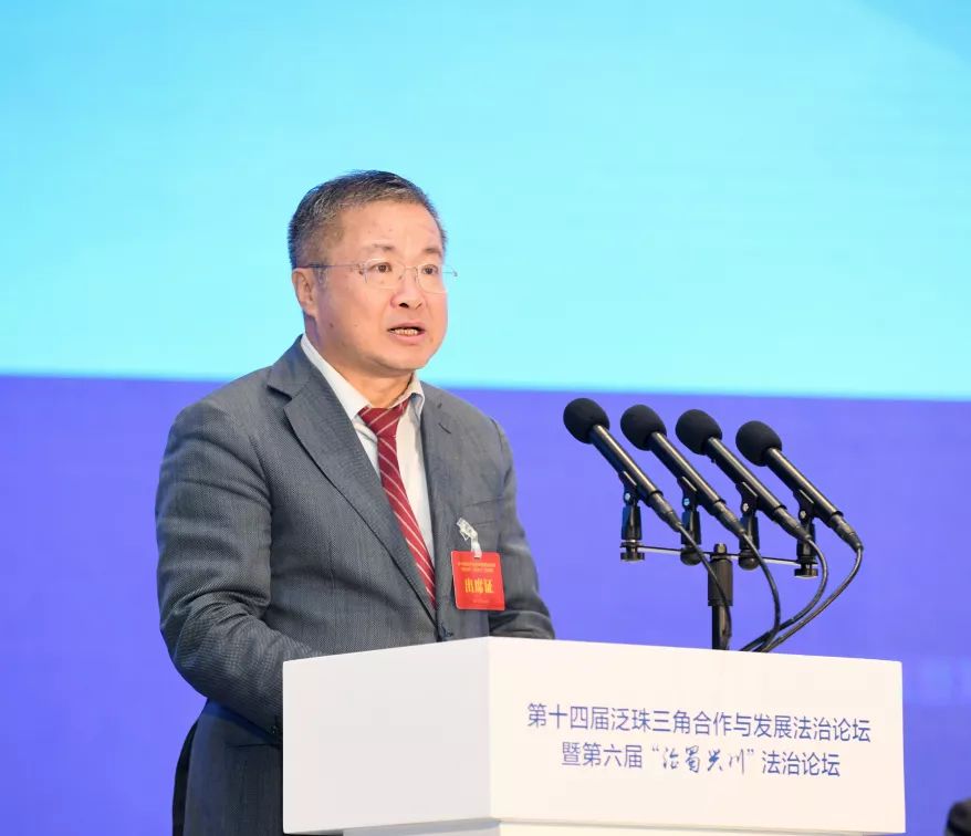 10月22日,中国法学会第十四届泛珠三角合作与发展法治论坛暨四川省法学会第六届“治蜀兴川”法治论坛在广安市成功举办。中国法学会副会长甘藏春,四川省委常委、政法委书记、省法学会会长邓勇,省社科联主席、省法学会副会长杨泉明,广安市委书记李建勤,市委副书记、市长曾卿,中国法学会会员部副主任崔秀娟,四川省委政法委副书记、省法学会党组书记、常务副会长沈涧出席论坛。甘藏春、邓勇、曾卿在开幕式上致辞。沈涧主持论坛开幕式并作闭幕总结。来自泛珠三角区域十省(区、市)及特邀黑龙江省、甘肃省法学会,各市(州)法学会,省直有关部门和在川企业、高校、新闻媒体的嘉宾共400余人参加论坛。