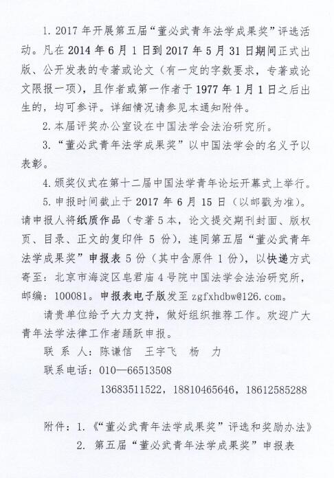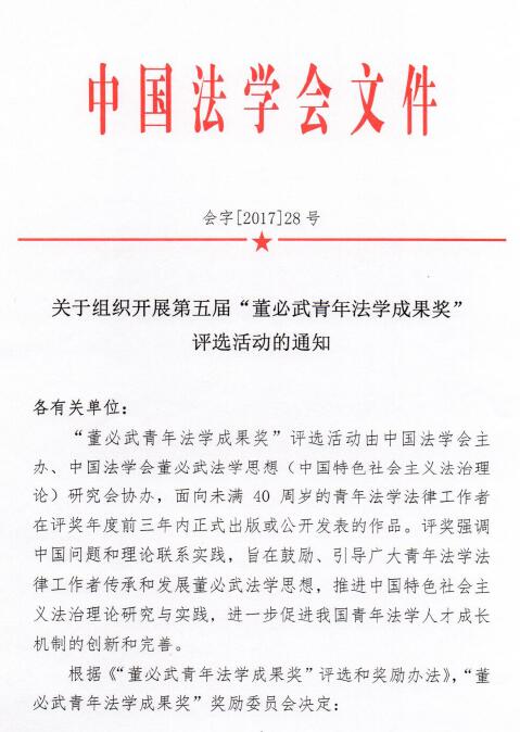 关于组织开展第五届“董必武青年法学成果奖”评选活动的通知,DOC
