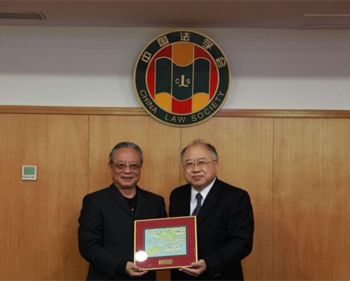 中国法学会常务副会长陈冀平与考察团团长廖长城互赠纪念品