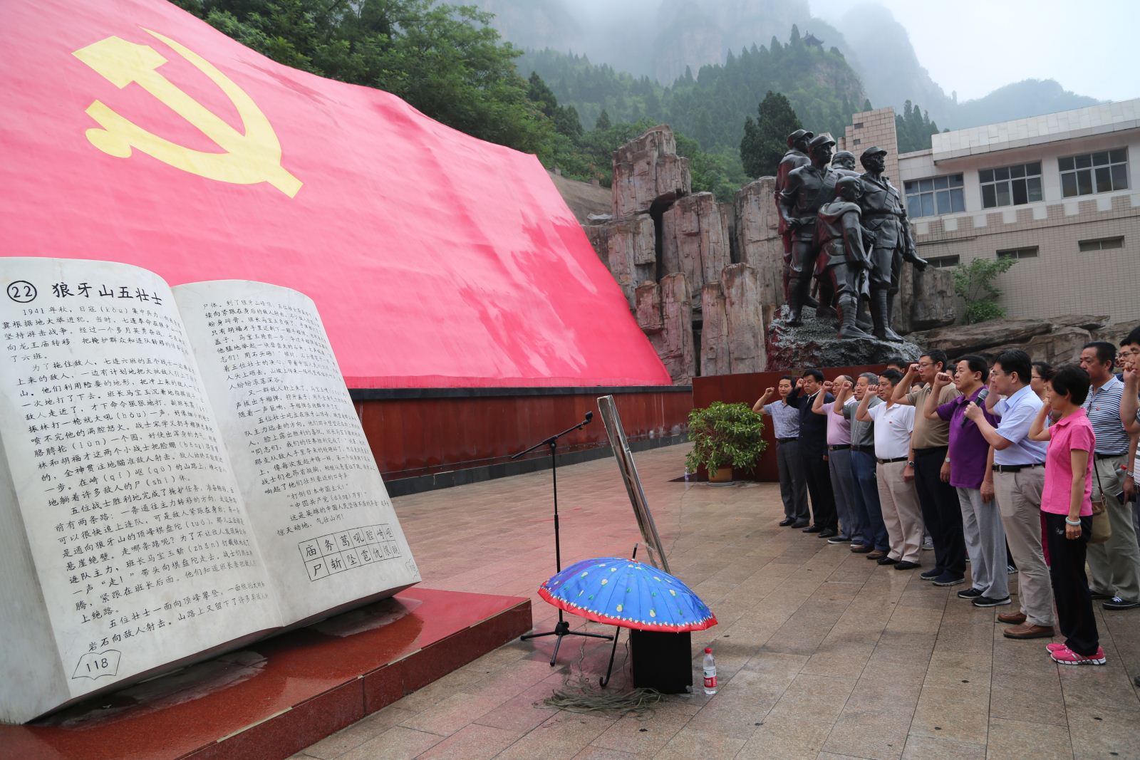 28日上午,京津冀法学会全体党员在狼牙山五勇士雕像前,面向鲜红的党旗,重温入党誓词,锤炼党性情操,坚定党的理想信念,升华了随时为党和人民牺牲一切的公仆情怀。