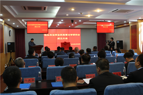 2018年4月28日上午,包头市中院召开包头市法学会民商事法学研究会成立大会。包头市法学会会长苏誉、市中院院长范俊峰出席会议并为大会致辞,包头市人大、市政协、自治区高院、包头市委政法委、市检察院、市司法局、包头律协有关负责同志,各旗县区法院分管院长及市中院相关业务部门负责人、部分法官参加了会议。