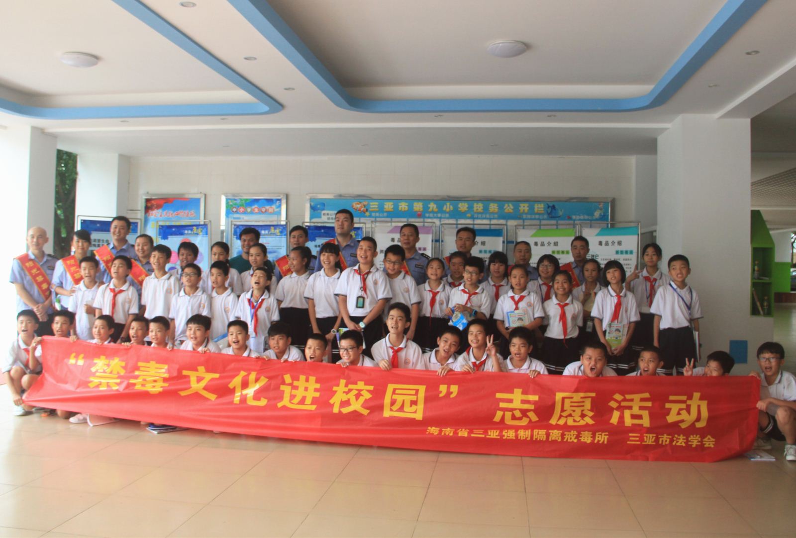 为进一步加强校园禁毒教育工作,增强广大师生抵御毒品的能力,提高师生珍爱生命、远离毒品的意识,在校园构筑起拒毒“防火墙”,6月25日下午,市法学会联合海南省三亚强制隔离戒毒所走进三亚市第九小学,在该校开展主题为“禁毒文化进校园”的禁毒宣教活动,近千名师生参加了活动。