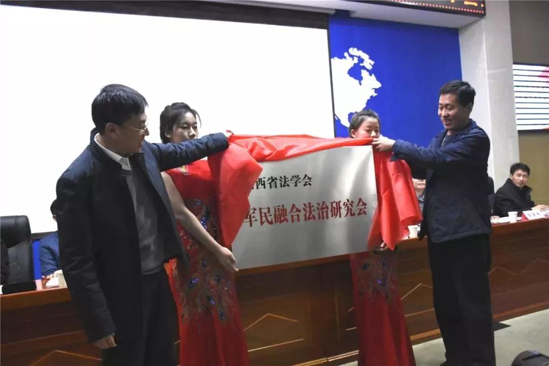 随后,马俊专职副会长与潘晋孝副校长共同为“山西省法学会军民融合法治研究会”揭牌,并与参会代表合影留念。