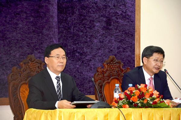 张文显副会长在柬埔寨皇家经济法律大学发表学术演讲,柬皇家经济法律大学校长禅那主持演讲会