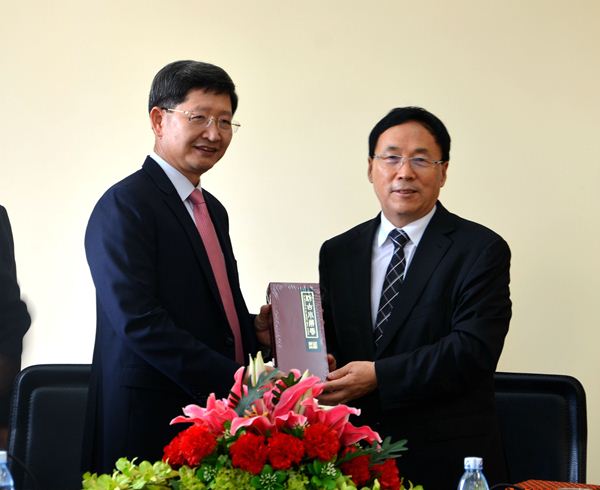 张文显副会长向柬埔寨皇家经济法律大学校长禅那赠送纪念品