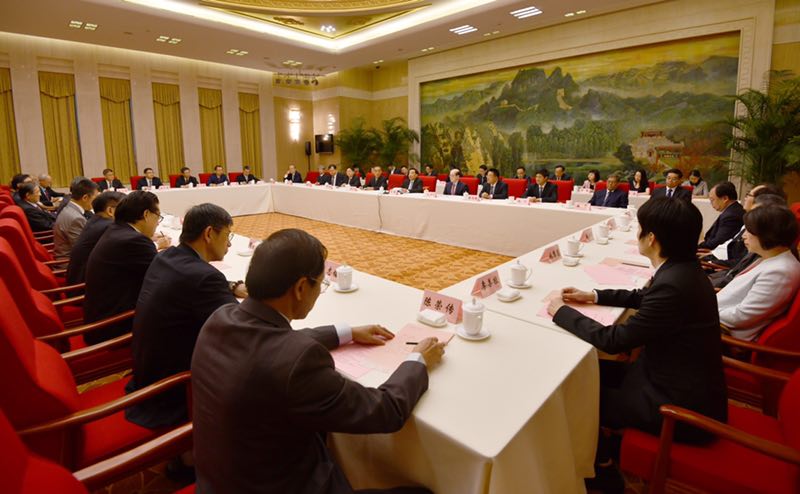 8月21日,中共中央政治局委员、全国人大常委会副委员长、中国法学会会长王晨在天津会见出席“第八届两岸和平发展法学论坛”的台湾嘉宾并讲话。