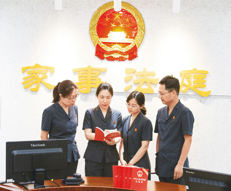民法典婚姻家庭编中对协议离婚规定了一个月的冷静期。北京市西城区人民法院自2016年起就在离婚案件中试行诉前冷静期机制。图为2020年6月11日,北京市西城区人民法院家事审判庭的法官们在学习民法典。 刘新武/摄