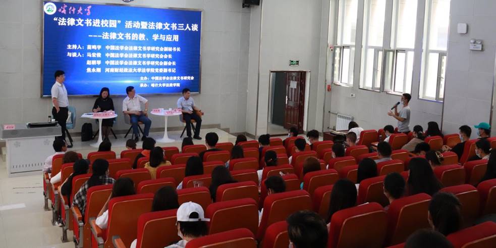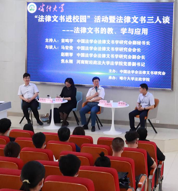 当天下午,研究会的同志们又赶赴喀什大学法政学院开展“法律文书进校园”活动,围绕“法律文书的教、学与应用”这一主题做三人谈。