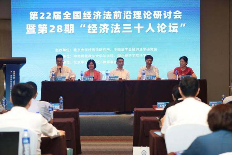 7月19日至20日,由北京大学经济法研究所和中国法学会经济法学研究会主办,中南财经政法大学法学院、湖北经济学院法学院联合承办的第22届全国经济法前沿理论研讨会暨第28期“经济法三十人论坛”及其青年圆桌论坛于武汉顺利召开。来自北京大学、中国人民大学、武汉大学、南京大学、上海交通大学、中山大学、华中科技大学、中国政法大学、西南政法大学、华东政法大学、西北政法大学、中南财经政法大学、中央财经大学、上海财经大学、辽宁大学、河北大学、华中师范大学、中国地质大学(武汉)、湖北经济学院、北京中伦(武汉)律师事务所等高校和科研机构、法律实务部门等60余名专家学者和青年学者参加了此次会议,并围绕“经济法责任理论:责任形式研究”之主题,进行了为期两天的深入交流与探讨。