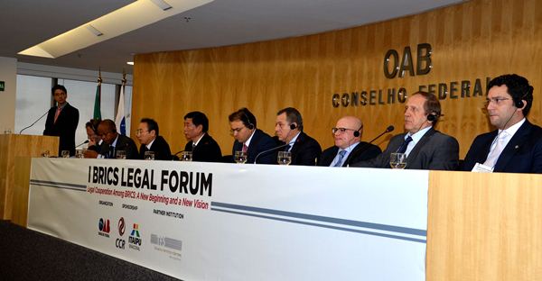 2014年12月11日至12日, 由金砖五国法学法律界共同发起的“金砖国家法律论坛”在巴西首都巴西利亚成功举办首届论坛。巴西律师协会主席马库斯·费尼希邬斯,巴西律师协会金砖委员会主席路易斯·塔西奥,俄罗斯法律家联盟董事会成员阿里克谢·克里钦,印度律师协会常务副会长普利桑特·库玛尔,印度律师协会副会长、印度副总检察长阿南德,中国法学会副会长兼秘书长鲍绍坤,南非法学会联合主席麦克斯·伯克瓦纳。南非开普敦大学代表曼库索等在论坛开幕式致辞。印度驻巴西大使苏尼尔·库玛尔、中国驻巴西使馆临时代办王卫、俄罗斯驻巴西使馆一秘莫索科维奇、英国驻巴西大使等外交使节出席论坛开幕式并向论坛的成立表示祝贺。来自巴西、俄罗斯、印度、中国、南非的法学法律界、企业界代表200余人参加了此次论坛。
