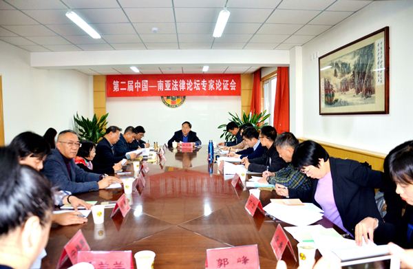 2016年11月1日下午,张文显副会长主持召开第二届中国-南亚法律论坛专家论证会。来自国务院发展研究中心、司法部司法协作与外事司等机构和中国人民大学、西北政法大学、云南大学等高校的十几位专家代表,围绕第二届中国—南亚法律论坛的主题议题设置和论坛机制的发展创新进行了深入讨论。中国法学会研究部主任李仕春、法律信息部主任吕兴焕和对外联络部副主任杨小平出席会议。