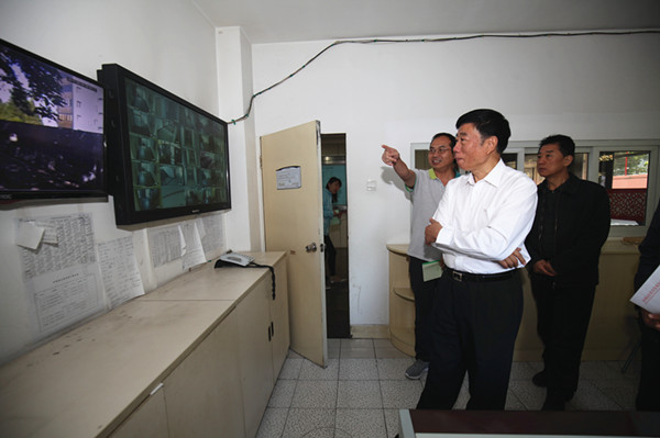 鲍绍坤与机关部门、机关服务中心等同志一起,先后对机关办公楼、值班室、监控室、食堂、停车场、网络机房等重点部位进行了细致检查。他指出,国庆、中秋“双节”将至,特别是党的十九大即将召开,节日期间的安全保卫工作十分重要。要提高认识,强化责任,切实把安全保卫各项制度落在实处,确保机关、网络安全、交通安全、食品安全、消防安全等。一要安排好节日值班,明确岗位职责,万勿发生空岗、漏岗现象;二要制定安全防控预案,重在风险防范,发现问题及时报告;三要将强节日期间公务车辆管理,使用车辆应履行审批手续;四要妥善安排好值班人员的就餐、住宿、值班补贴等。