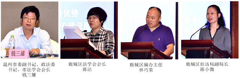 本次会议会期一天。26日上午,与会代表实地考察了鹿城区法学会办公地点和会员之家后,“部分省区市县级法学会建设现场推进会”在驻地会议室继续召开。会议由其江副会长主持,中国法学会会员部主任张所菲、副主任肖育斌、副巡视员崔秀娟,浙江省法学会专职副会长陆剑锋参加。温州市委副书记、政法委书记、市法学会会长钱三雄同志代表市委市政府致辞,并介绍了温州市法学会工作情况;鹿城区法学会会长陈洁介绍了发挥自身优势、服务平安建设,主动探索实践第三方调处矛盾纠纷新路径的工作经验;鹿城区编办主任林巧荣和鹿城区信访局副局长陈小微也分别围绕本部门职能,积极帮助、扶持鹿城区法学会承接“信访案件调处化解”职能转移,实现政府与社会组织共治共管新态势的具体做法。