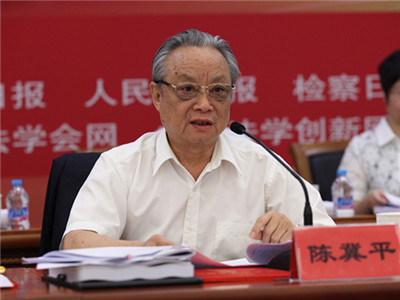 中国法学会副会长兼秘书长鲍绍坤主持第一单元演讲