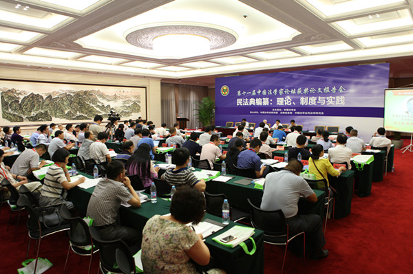 2016年8月23日晚,第十一届中国法学家论坛获奖论文报告会在北京举行。会议由中国法学会主办,中国法学会研究部、中国法学会法律信息部、中国法学会民法学研究会共同承办。中国法学会党组成员、副会长、学术委员会主任张文显教授出席论坛并讲话。全国杰出资深法学家、中国法学会学术委员会荣誉委员、北京师范大学刑事法律科学研究院名誉院长、中国人民大学法学院高铭暄教授出席论坛。来自全国各地的知名法学院校负责人、第十一届“中国法学家论坛征文奖”论文获奖作者和优秀组织单位的代表、应邀参加第十一届中国法学家论坛的专家学者近150人参加了报告会。开幕式由中国法学会研究部主任李仕春教授主持,闭幕式由中国法学会法律信息部主任吕兴焕研究员主持。