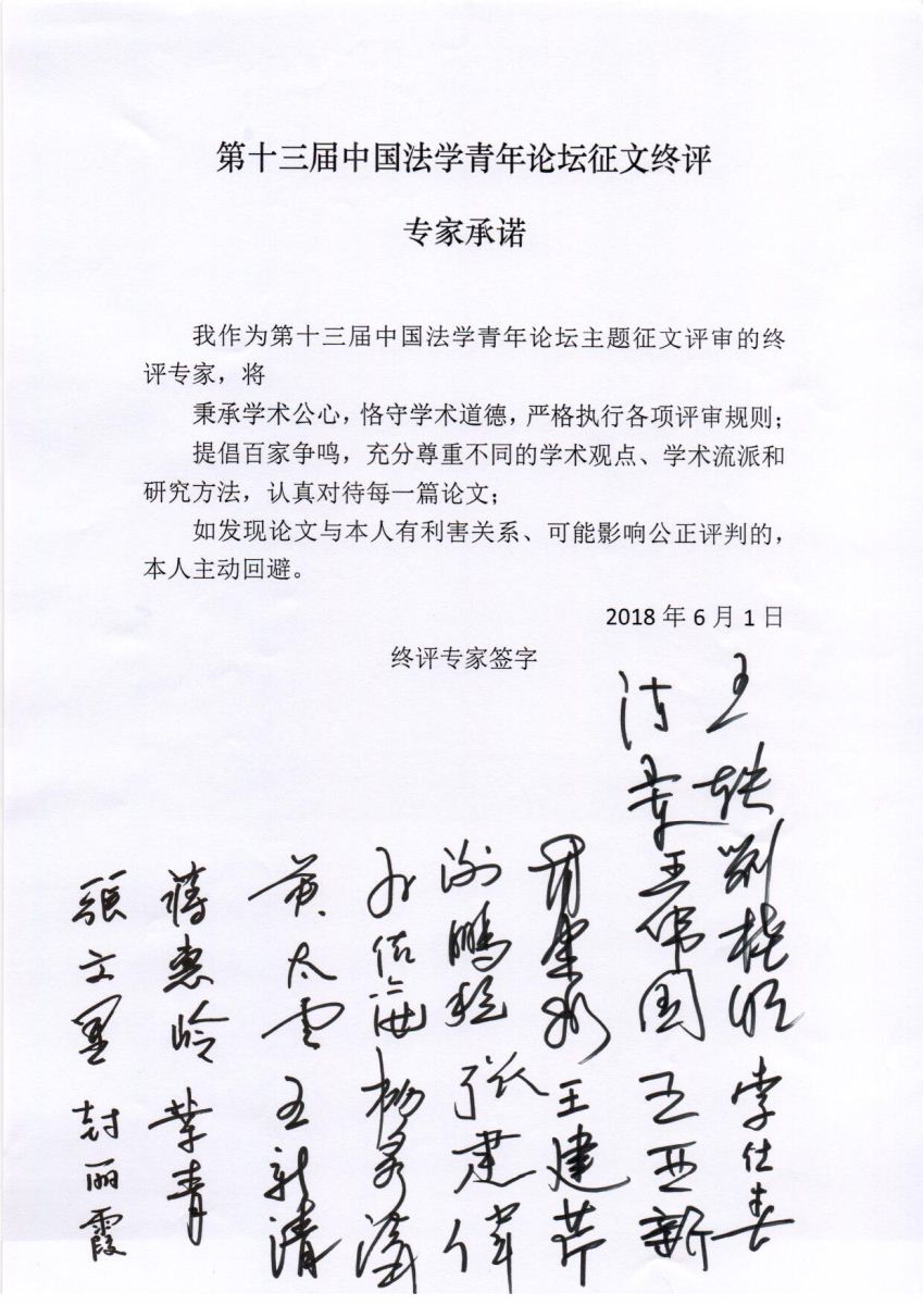 评审委员会在讨论通过《第十三届中国法学青年论坛主题征文终评办法》之后,对进入终评的517篇论文进行了集中书面匿名评审。18位评审专家分为6组,每组3人。各组专家经过认真审阅、充分讨论,提出一、二、三等奖及优秀奖推荐获奖论文名单,交由评审委员会集体讨论。评审委员会全体成员经讨论,最终确定拟获一等奖论文30篇、二等奖论文60篇、三等奖论文96篇、优秀奖论文95篇。拟获奖论文占有效稿件总数(3980篇)的7.1%。当日,论坛组委会秘书处对全部拟获奖论文进行了反学术不端检测和人工复查。检测和复查结果为:拟获三等奖论文9篇、拟获优秀奖论文5篇存在有违学术规范的情况。按照终评办法,特将该14篇论文剔除出拟获奖名单,并决定不再增补。