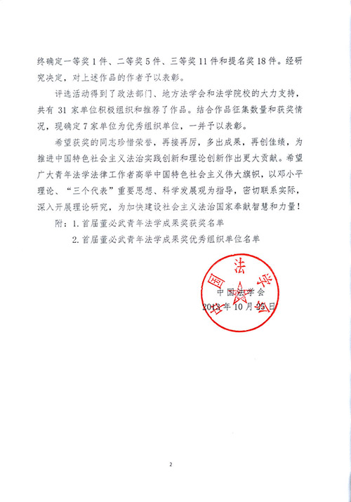 附2:优秀组织单位名单:首届董必武青年法学成果奖