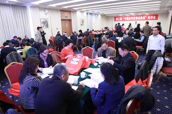 12月10日,第三届“中国法学优秀成果奖”终评会在北京友谊宾馆顺利举行。会议评选产生了专著类、论文类获奖作品共55件。中国法学会党组书记、常务副会长陈冀平出席并讲话。来自中央有关部门的负责同志和来自全国法学院校的知名专家学者共42名评委参加了终评会。终评会由中国法学会党组成员、副会长、学术委员会主任张文显主持。