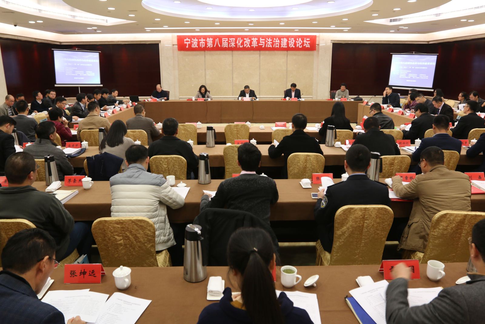 深化改革与法治建设论坛作为集结我市法学法律工作者才智,深化学术交流的常态化平台,自2009年创设以来,每年举办一届,论坛坚持立足宁波、研究宁波、服务宁波,直面我市经济社会发展现实,精选当年主题,至今已成功举办八届。本届论坛的主题是:“推进‘一带一路’建设法治问题研究”,还下设了“经济新常态下我市维护稳定工作法律问题研究”等24个参考选题指引,自今年4月发起以来,共征集论文228篇。经过学术不端检测、初选和终评等环节,最终确定一等奖5篇、二等奖11篇、三等奖19篇、优秀奖25篇和优秀组织奖单位3个。为了鼓励先进,论坛对获奖论文作者和优秀组织奖单位——市人民检察院、市法学会原江东区联络组和鄞州区人民法院进行了表彰奖励。