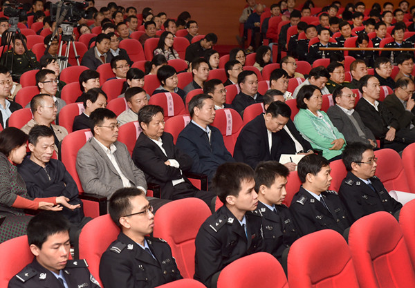省检察院党组书记、检察长郑红同志出席了报告会。省直机关各单位、南方报业传媒集团领导班子成员及部分机关干部、省依法治省办及各成员单位领导干部;省法学会各学科研究会部分理事;省律师协会部分律师;《民主与法制》社广东记者站等460多人参加了报告会。