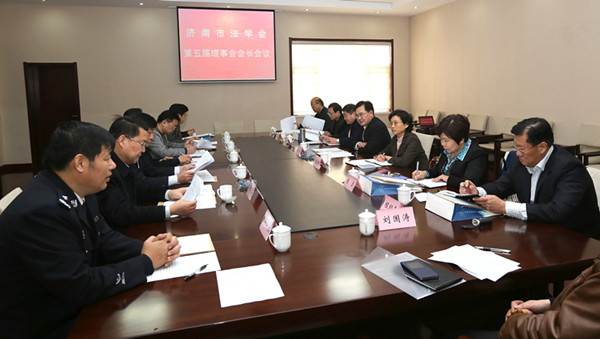 3月20日,济南市法学会第五届理事会召开会长会议,研究了拟提请济南市法学会五届一次常务理事(扩大)会议审议的有关事项,通过了《济南市法学会2015年度会费收支情况说明》、《济南市法学会专职会长办公会议制度(暂行)》。中共济南市委法委副书记、济南市法学会会长姚怀祥主持会议,济南市法学会常务副会长兼秘书长孙德龙,副会长张海昕、张岩、谭勇、刘延杰、程绍春、冯长英、皇甫庆森、杜红波、周长军、刘炳君、杨士林出席会议。