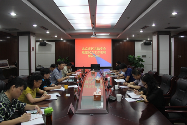 2015年7月20日,北京市法学会在机关第二会议室组织召开办公会议,专题研究区县法学会组建试点工作的进展情况。北京市法学会党组书记苗林、专职副会长杜石平、秘书长邵新莲、海淀区委政法委法制室副主任李一丹、大兴区委政法委法制室干部王麒越、龙铁苗,以及市法学会机关部门的领导和联络部全体同志参加了会议。会议由党组书记苗林同志主持。