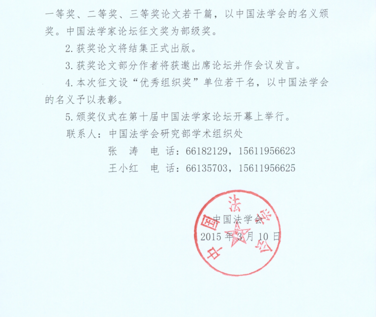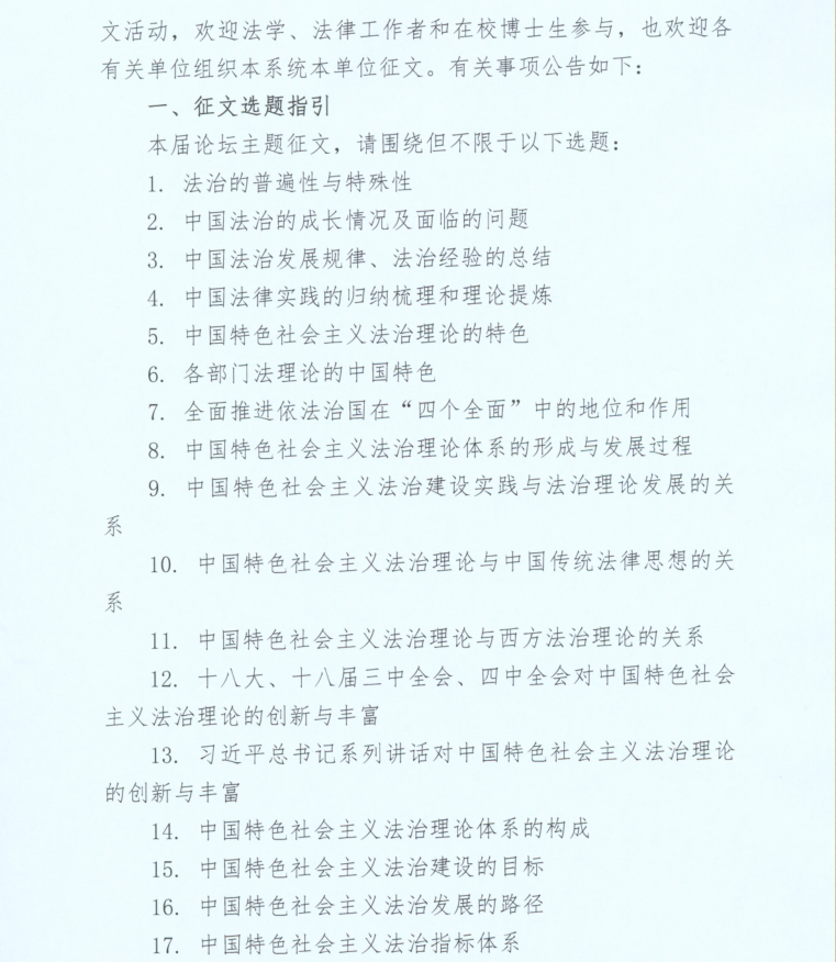 关于举办第十届中国法学家论坛主题征文活动的通知