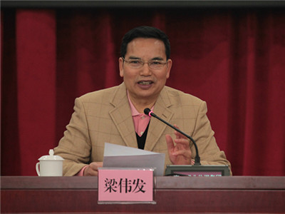 广东省政协副主席、省法学会会长梁伟发主持了报告会