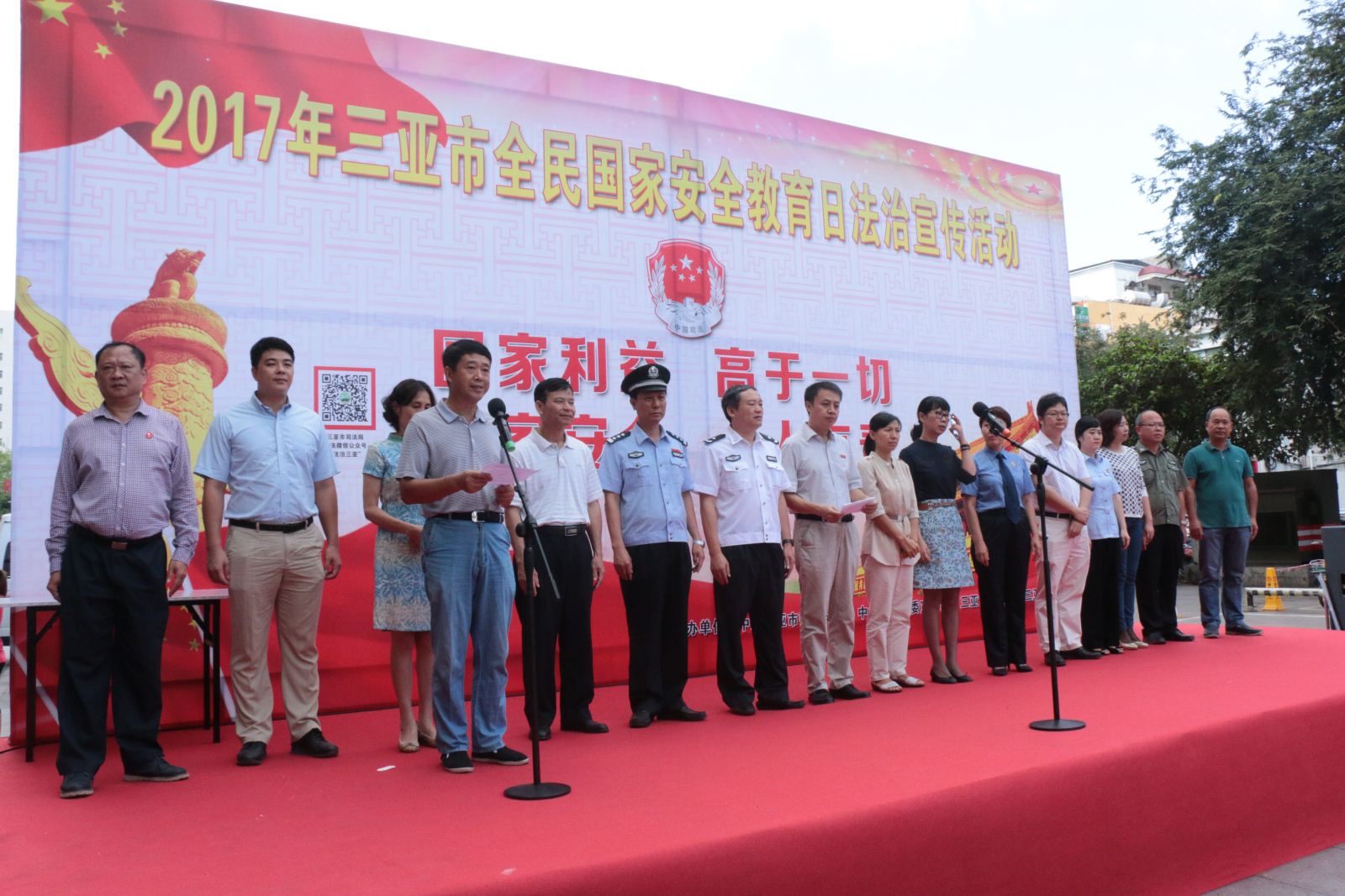 为增强群众国家安全观,提高群众依法防范和抵制危害国家安全行为的意识,维护国家安全营造良好的法治氛围,4月15日,在我国第二个全民国家安全教育日来临之际,市委政法委、市委宣传部、市司法局、天涯区和市法学会等单位于市明珠广场共同组织开展三亚市2017年全民国家安全教育日法治宣传教育活动。活动由市委政法委常务副书记王晓兵主持,三亚市副市长陈晓昆出席并致辞。