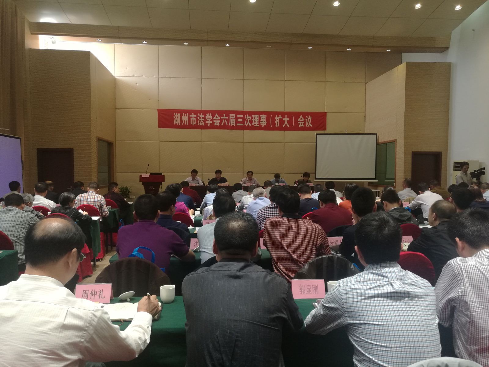 4月18日,湖州市法学会召开六届三次理事(扩大)会议。会议审议通过了市法学会2016年工作报告,表彰了2016年度法学研究优秀成果,获奖作者代表作了交流发言。市法学会会长金建新出席并讲话。