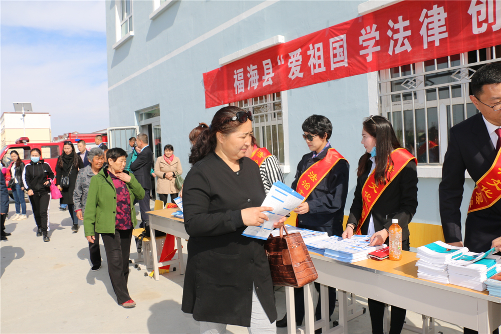 近日,福海县委和法学会结合自治区第十四个“宪法法律宣传月”和“法律下乡”活动,开展了以“爱祖国、学法律、创和谐”为主题的法治文化基层行活动,全县共800余名干部群众参加了活动。
