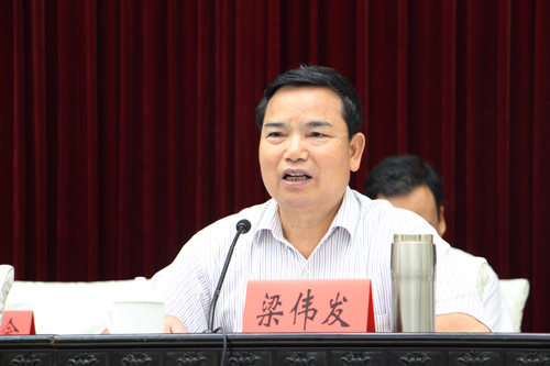 梁伟发传达有关会议精神并作工作部暑 杨斯萍摄
