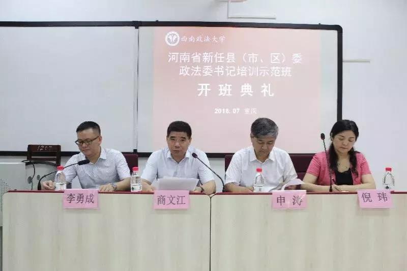 省委政法委政治部主任申涛,副巡视员、政治部副主任倪玮,西南政法大学副校长商文江,继续教育学院院长李勇成出席了7月16日上午举行的开班仪式。申涛主任作了开班动员讲话,对培训班学员提出三点要求:一要提高认识,端正态度,高度珍惜这次难得的学习机会;二要学用结合,学以致用,努力提升政法理论和业务能力水平;三要认真学习,严明纪律,营造良好班风,展示河南政法队伍良好形象。商文江副校长发表了热情洋溢的致辞。
