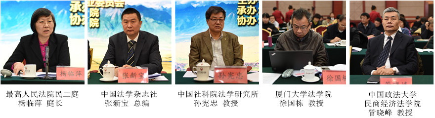 最高人民法院民二庭庭长杨临萍主持第一阶段的主旨发言,参加大会主旨发言和点评的主要有中国法学杂志社张新宝总编、中国社科院法学研究所的孙宪忠教授、厦门大学法学院徐国栋教授、中国政法大学民商经济法学院管晓峰教授、北京航天航空大学法学院龙卫球教授、最高人民法院环资庭副庭长王旭光、西南政法大学民商法学院谭启平教授、中国海洋大学法学院徐祥民教授、河南省高院院长助理王韶华等。在分组讨论环节,与会专家学者、法院代表围绕“中国民法典编纂研究”、“民商事审判疑难问题研究”和“新民诉法及其解释适用相关问题研究”三个专题展开了深入交流和讨论。