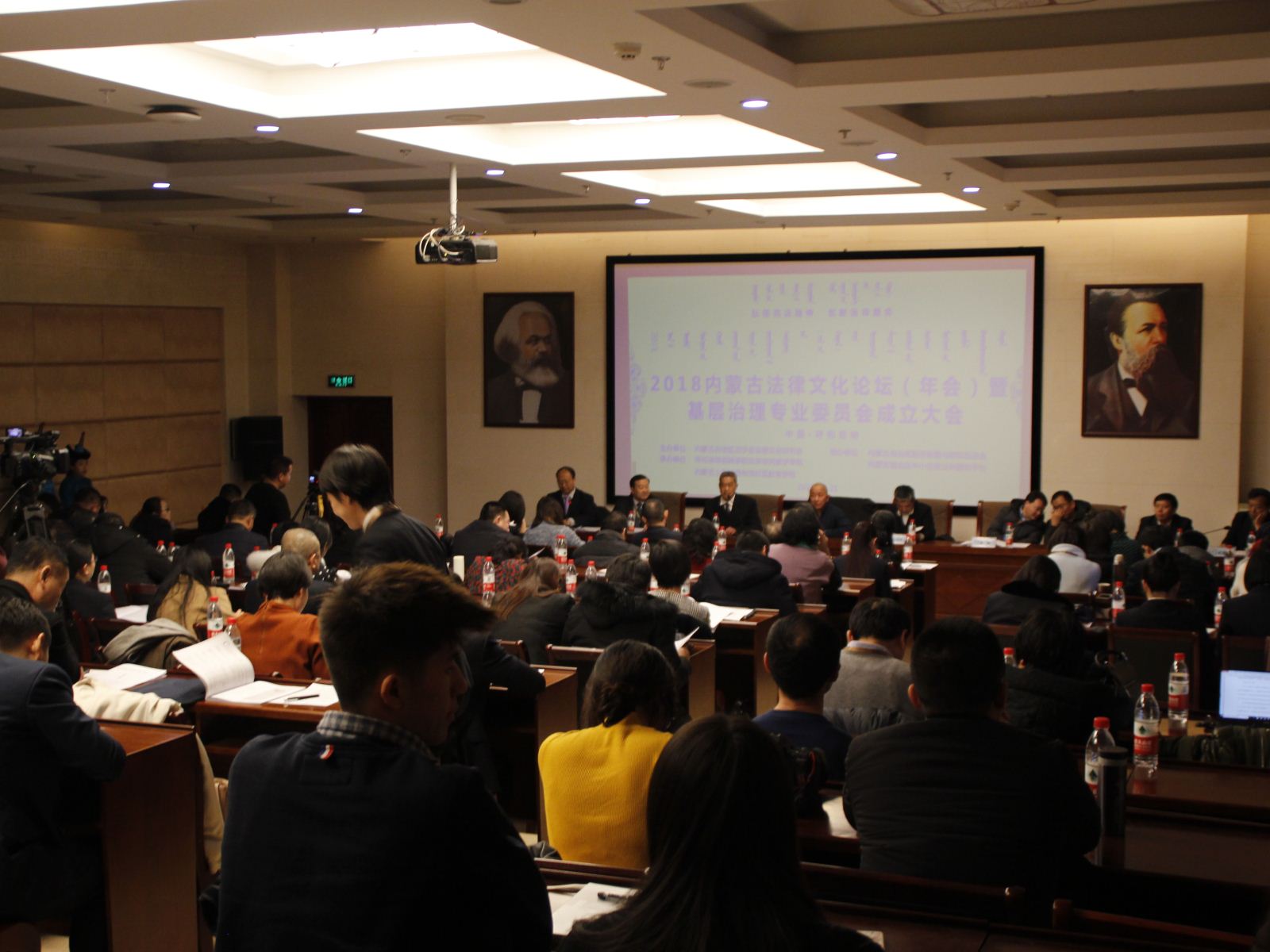 12月21日下午,“2018内蒙古法律文化论坛年会暨基层治理专业委员会成立大会”在呼和浩特民族学院举行