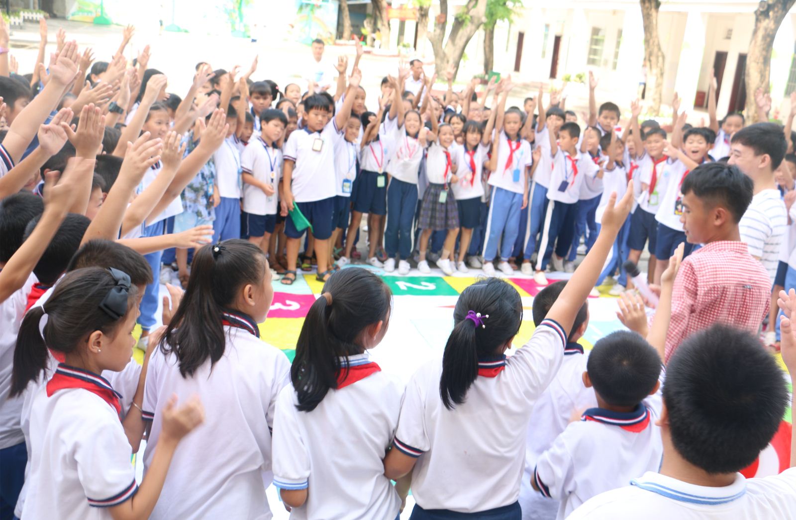 “6!6!6!……”孩子们的欢呼声随着被抛得起起落落的骰子时起彼伏,“请问中华人民共和国国歌的歌曲名是什么?”主持人一边与孩子们玩游戏,一边向孩子们提问一个个《宪法》问题,孩子们扔骰子、玩游戏、抢答题、学《宪法》,这一过程孩子们激动、兴奋,满怀期待,玩得不亦乐乎,却又收获满满。