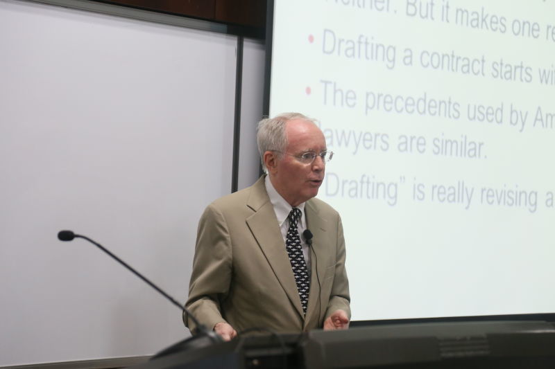 陶博教授强调无论是美国律师还是中国律师起草合同的时候都是依赖之前的先例。“起草合同就是修改之前样例的过程”,陶博教授认为,正是由于这些先行样式的存在,使得美国律师、中国律师起草合同的起点是一样的。“合同中的歧义是诉讼最重要的来源”,“没有歧义或者歧义更少的合同才是更好的合同”,中国律师的优势在于他们可以在美国律师看不到的合同语言分歧上做得更好。
