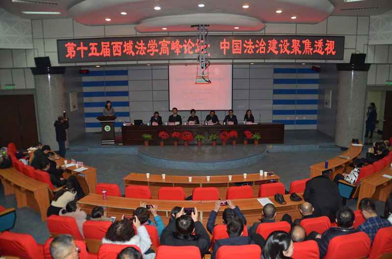 2018年11月17日上午,由石河子大学、新疆生产建设兵团法学会主办,石河子大学政法学院承办的第十五届“西域法学高峰论坛”在石河子大学学术报告厅开幕。