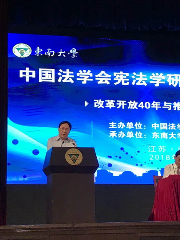 今年2月18-19日,中共中央以一次全会来专题研究宪法修改和宪法实施问题,这在中国共产党和中华人民共和国的历史上,都是第一次。2月24日,中共中央政治局还就我国宪法和推进全面依法治国举行了集体学习,中央政治局这次集体学习会是在全国两会即将召开、宪法修改进入关键程序的时候,在新中国第一部宪法的诞生地即第一届全国人民代表大会第一次会议的会址(中南海怀仁堂)举行的,具有特殊意义。会上,总书记强调决胜全面建成小康社会、开启全面建设社会主义现代化国家新征程、实现中华民族伟大复兴的中国梦,推进国家治理体系和治理能力现代化、提高党长期执政能力,必须更加注重发挥宪法的重要作用。要加强宪法实施和监督,把国家各项事业和各项工作全面纳入依法治国、依宪治国的轨道,把实施宪法提高到新的水平。2018年3月11日,第十三届全国人大第一次会议通过了《中华人民共和国宪法修正案》(第32-52条)。这是中国特色社会主义进入新时代的第一次修宪。21条宪法修正案既符合法治原则又体现法理精神,必将使宪法进而使整个法律体系和法治体系更加完善,必将更好地发挥以良法促进发展、保障善治的重要作用。8月24日,在中央全面依法治国委员会第一次会议上,习近平总书记在讲话中把“坚持依宪治国、依宪执政”作为“十个坚持”之一,在关于今后几年全面推进依法治国的重大任务安排中,提出首要的任务就是“要全面贯彻实施宪法,在全社会深入开展尊崇宪法、学习宪法、遵守宪法、维护宪法、运用宪法宣传教育活动,弘扬宪法精神,加强宪法实施和监督。”这些充分说明,以习近平同志为核心的党中央高度重视宪法的完善发展,高度重视宪法在治国理政中的作用,高度重视中国特色社会主义宪法学理论构建。这对于宪法学来说,是难得的历史机遇和学科荣耀,是新时代中国宪法学繁荣发展的政治资源和理论资本。希望宪法学研究会牢牢抓住历史机遇,坚定宪法道路自信、制度自信和实践自信,深入推动理论创新,加快构建中国特色社会主义宪法学,为依宪执政、依宪治国,建设法治中国做出新的贡献。
