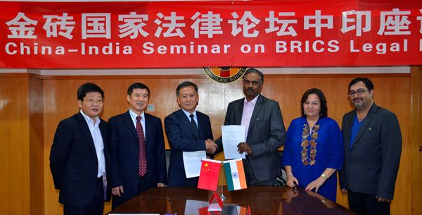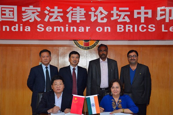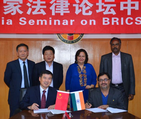2014年8月25日下午,中国法学会、印度律师协会在北京共同举办“金砖国家法律论坛中印座谈会”。中国法学会对外联络部主任谷昭民,上海财经大学法学院院长郑少华,云南大学法学院院长、中国-南亚法律研究中心主任陈云东,西南政法大学国际法学院院长、中国-东盟法律研究中心秘书长张晓君,印度律师协会名誉秘书长库玛尔,印度副总检察长助理阿南德,印度法律研究院理事长希瓦•库玛尔等参加此次座谈会。双方就金砖国家法律论坛、中国-南亚法律论坛的议题、机制、发展战略等进行了深入交流,取得了丰硕成果,为推动成立并成功举办金砖国家法律论坛、中国-南亚法律论坛奠定了坚实基础。座谈会后,中国-南亚法律研究中心与英联邦法律教育协会(亚洲-印度)签署了双边合作备忘录,旨在加强双方法律信息与出版物的交流。