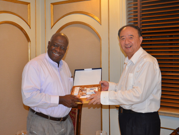 上海市法学会会长林国平向巴巴多斯首席大法官赠送纪念品
