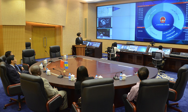 巴巴多斯首席大法官吉布森在上海市高级人民法院参观审判信息管理中心
