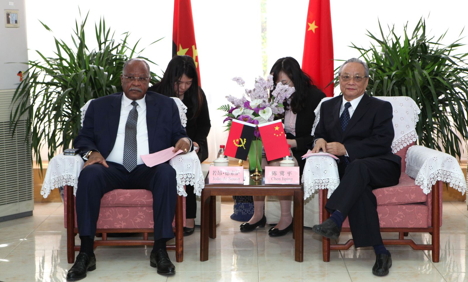5月16日,中国法学会党组书记、常务副会长陈冀平在中国法学会会见安哥拉总检察长若昂·德索萨代表团一行