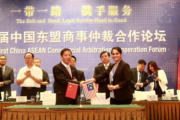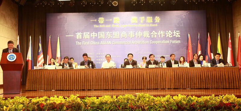 2016年9月20日,为配合我国政府“一带一路”战略实施,在中国法学会的指导下,由环宇中国东盟法律合作中心主办,中国海南仲裁委员会、中国广州仲裁委员会协办的首届“中国东盟商事仲裁合作论坛”在中国海口举办。全国人大常委、全国人大法律委员会副主任委员、中国法学会副会长张鸣起,海南省人民政府副省长陆俊华出席论坛并作开幕式致辞。环宇中国东盟法律合作中心理事长、中国海南仲裁委员会主任施文作论坛主旨发言。
